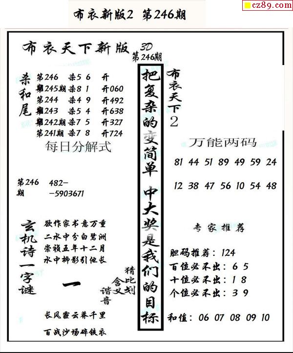 2025332期真精华布衣123456