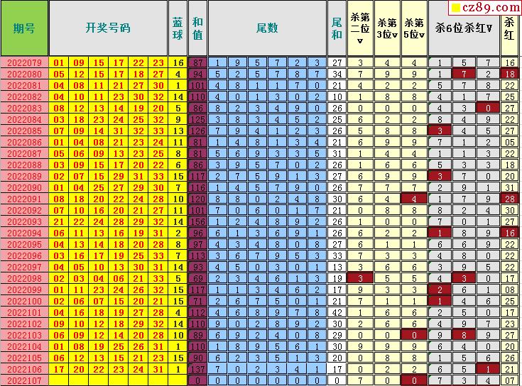 22年107期飞向阳光福彩双色球预测图表汇总