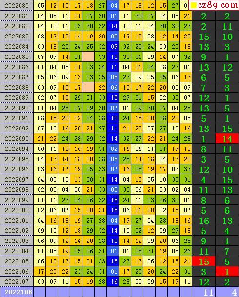 双色球2022108期阳光杀蓝汇总图表