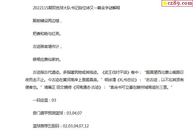 2022年115期牛彩网双色球字迷图谜汇总