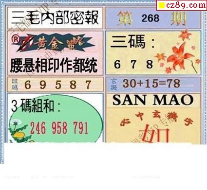 三毛图2022268期3d图谜