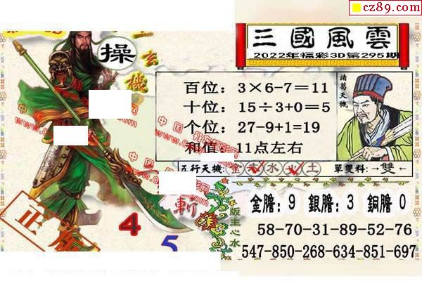 福彩3D2025332期 万家图谜三国胆拖杀图
