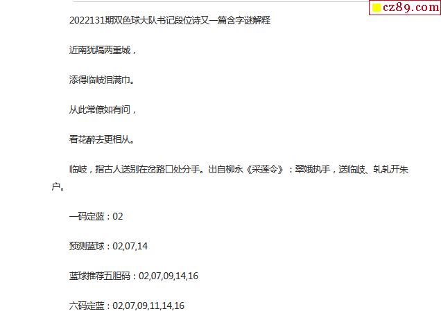 2022年131期牛彩网双色球字迷图谜汇总