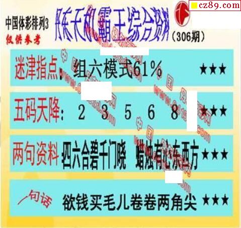 2022年306期牛彩网体彩P3画迷图谜汇总分享