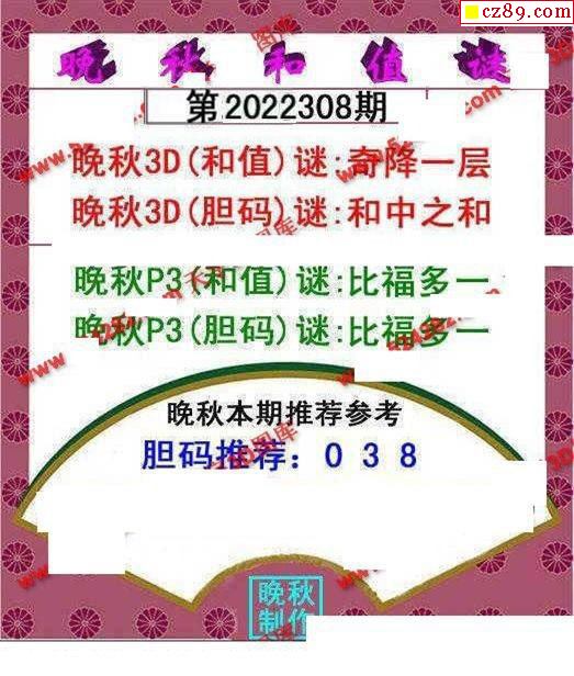 晚秋和值谜2025330期3d图谜
