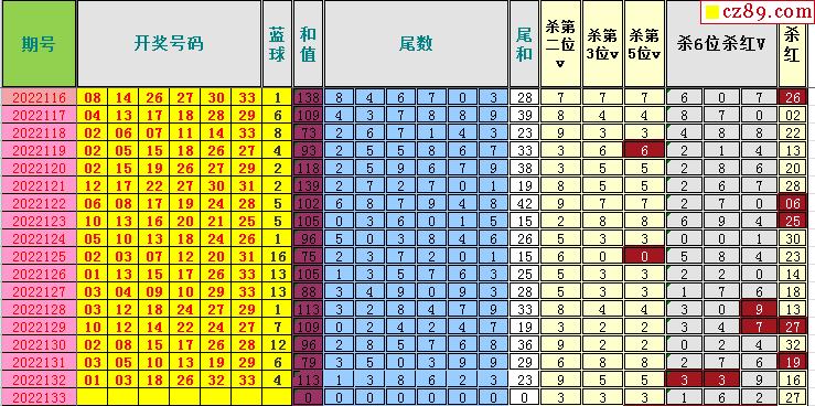 双色球144期 彩宝贝专家红蓝球杀号预测图表