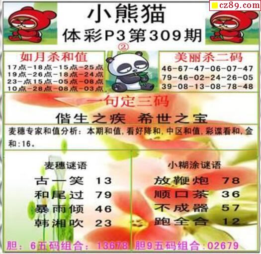 2022年309期牛彩网体彩P3画迷图谜汇总分享