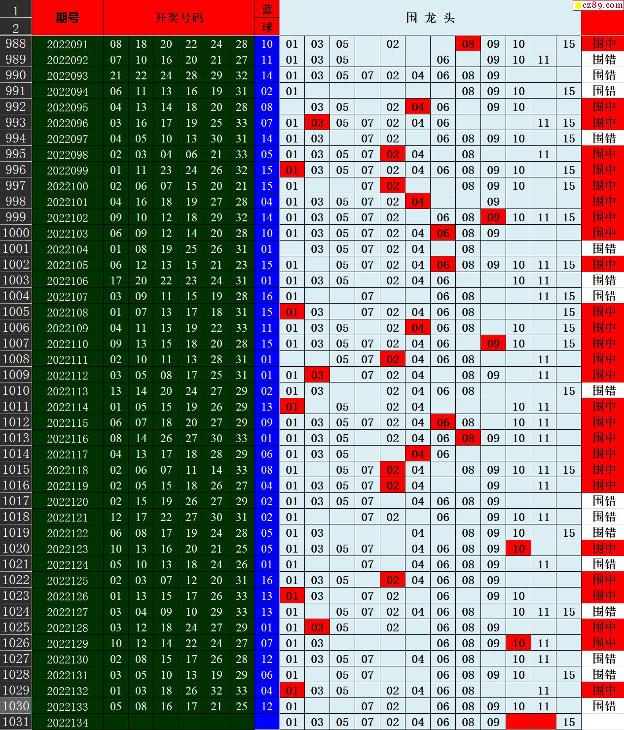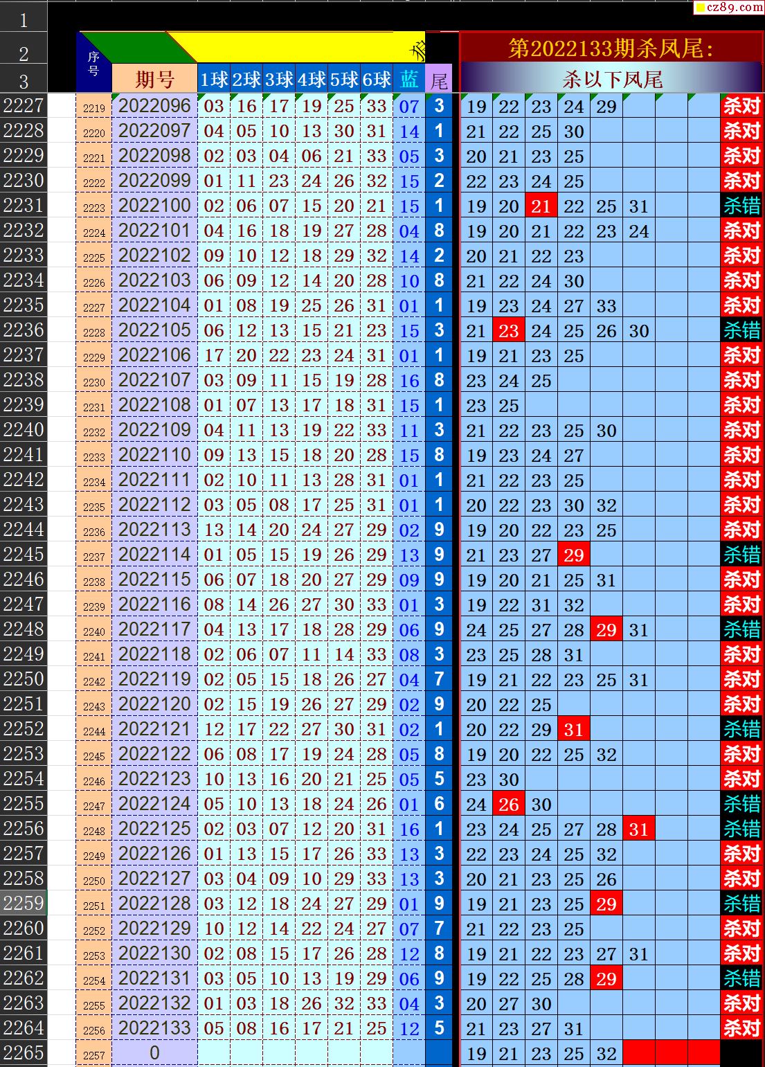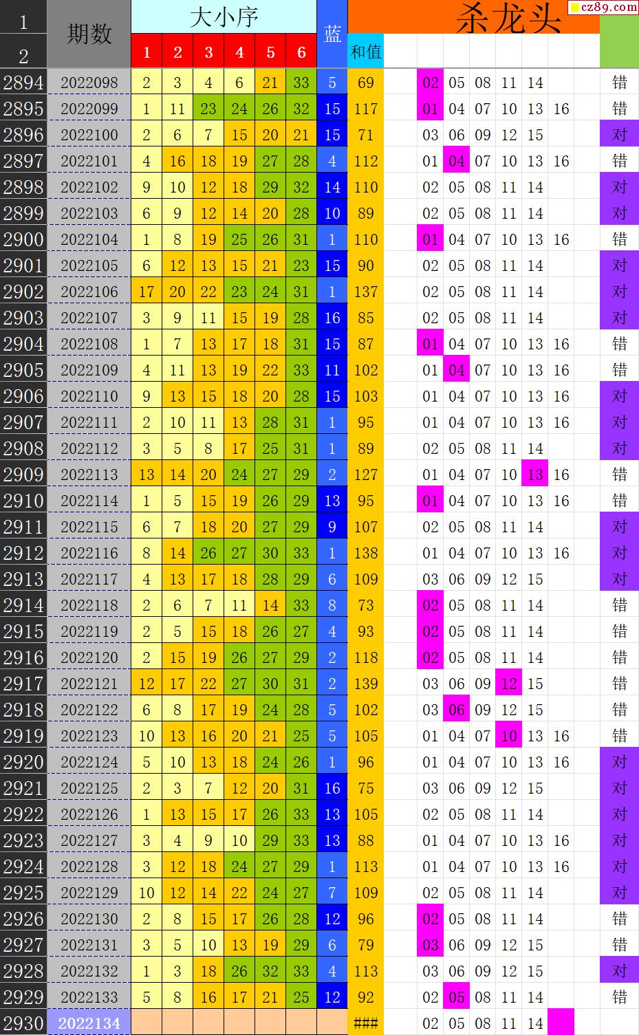 22年134期秋雨龙头凤尾走势图表