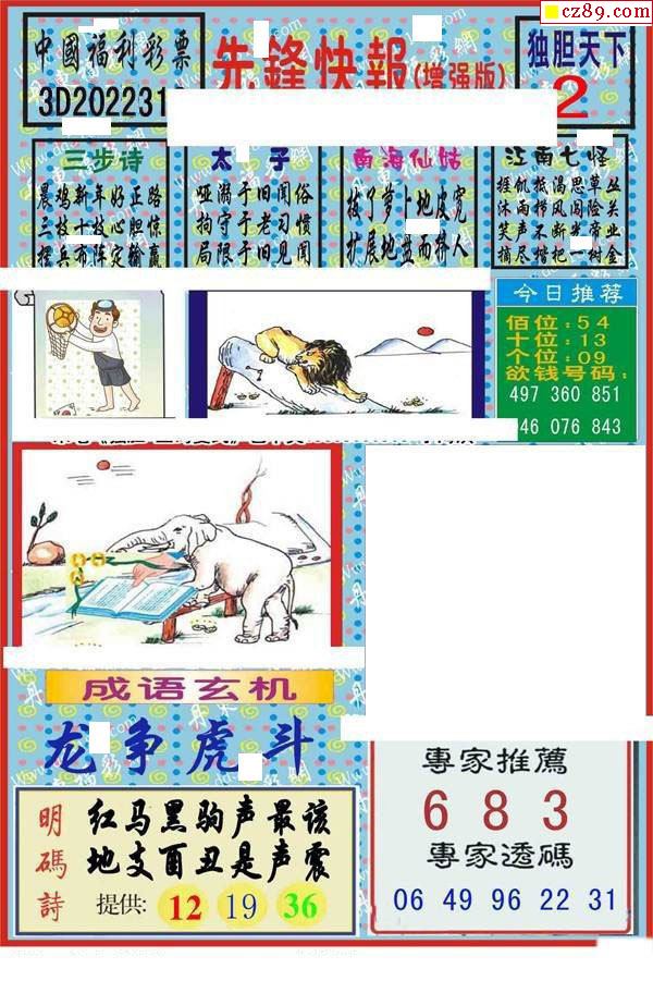 牛彩版3D字谜彩报图25年330期打印版