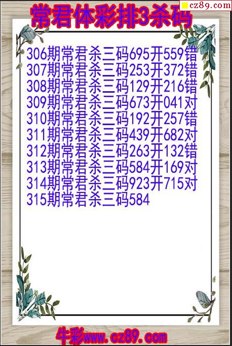 25年333期常君体彩排3杀码图
