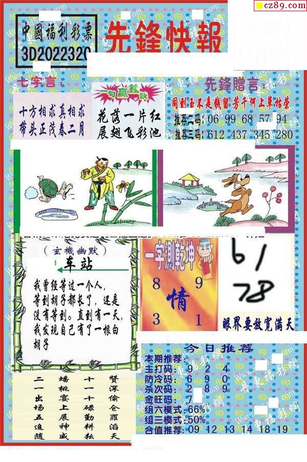 牛彩版3D字谜彩报图25年329期打印版