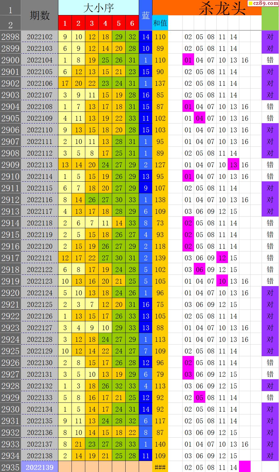 22年139期秋雨龙头凤尾走势图表