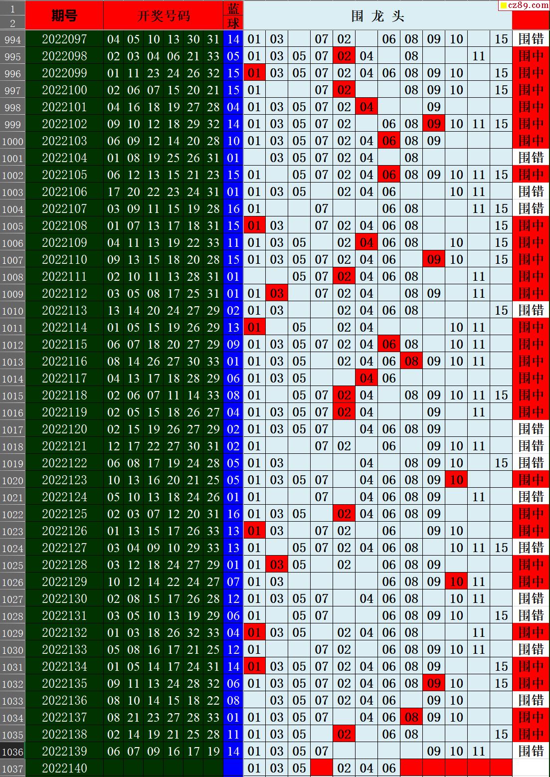 22年140期秋雨龙头凤尾走势图表