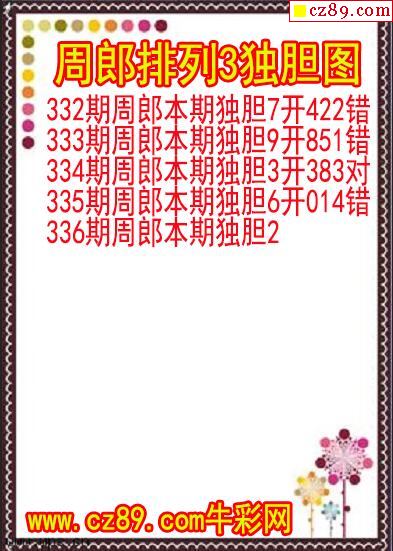 2025年333期牛彩网体彩P3画迷图谜汇总分享