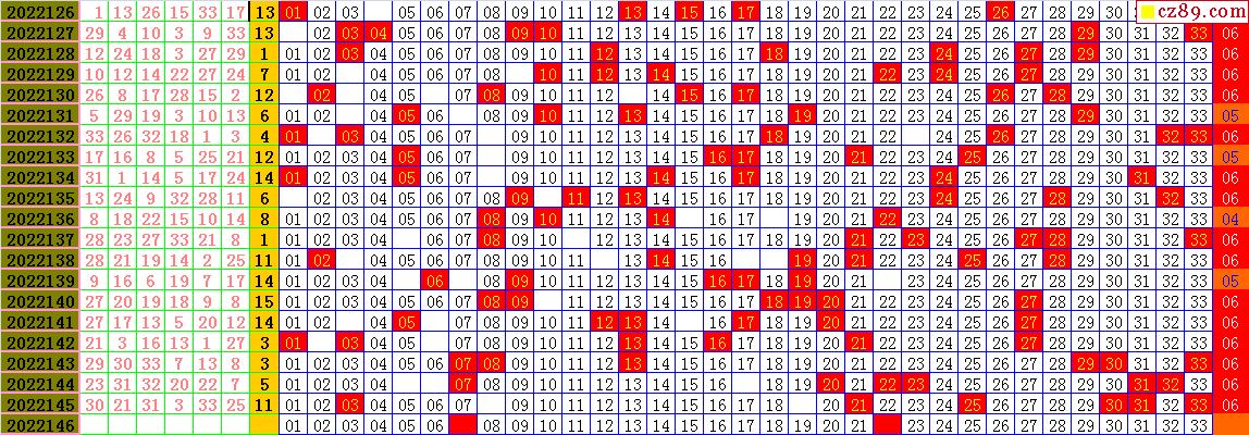 22年146期飞向阳光福彩双色球预测图表汇总