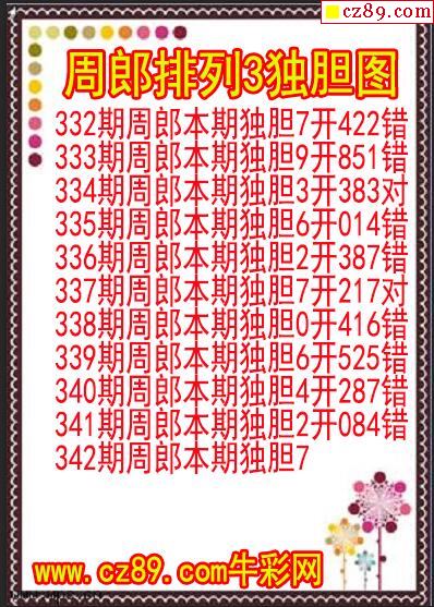 2025年334期牛彩网体彩P3画迷图谜汇总分享
