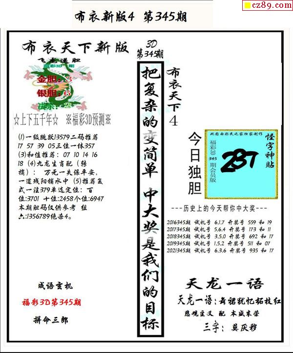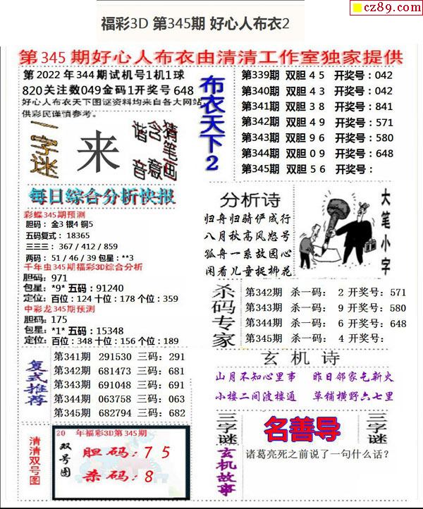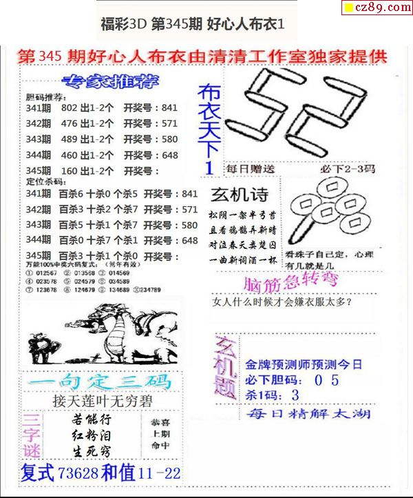 福彩3D2025334期 祁连牧哥百财纳福胆码图谜推荐