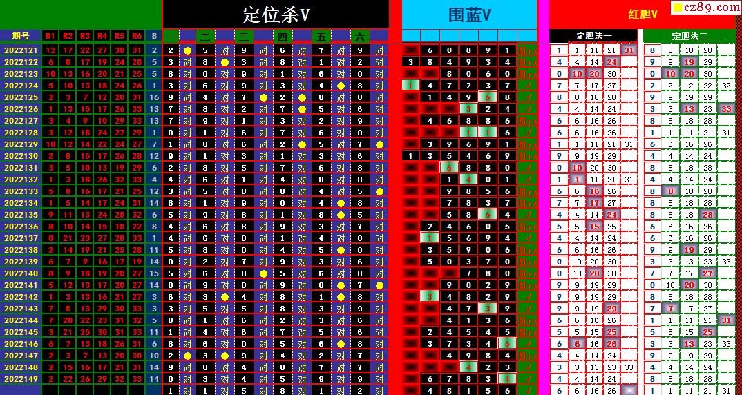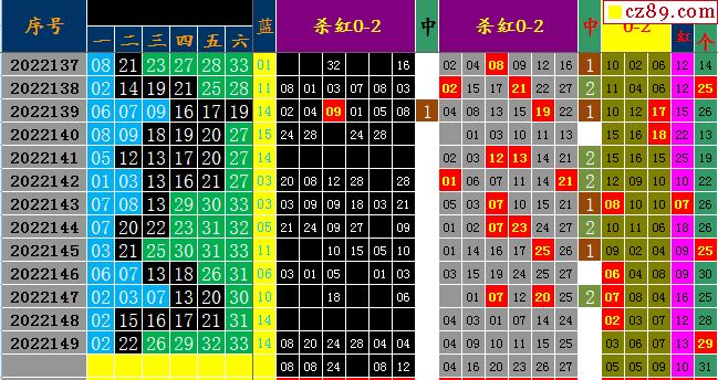 双色球2025年图迷144期 金光仙红蓝双杀图