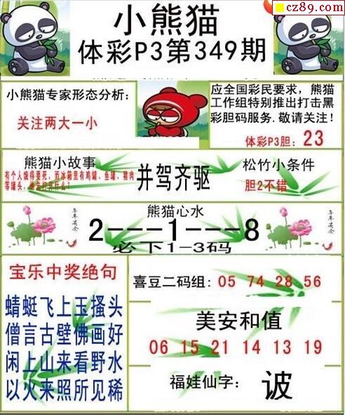 2022年349期牛彩网体彩P3画迷图谜汇总分享