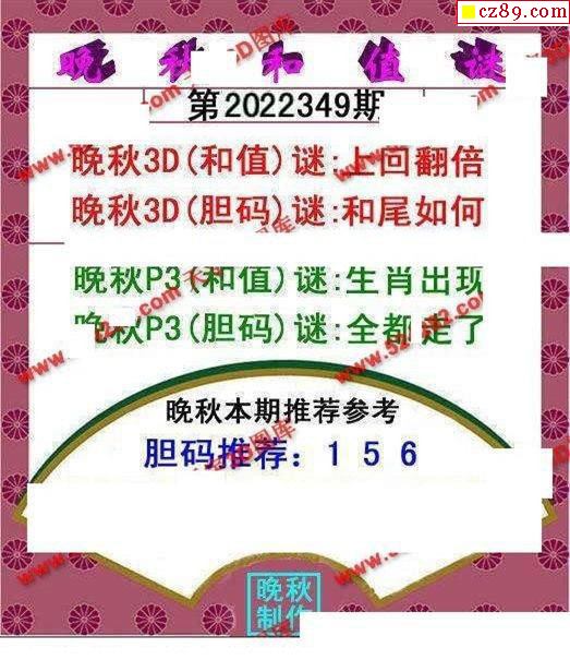 晚秋和值谜2025333期3d图谜