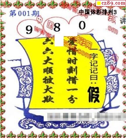 2023年001期牛彩网体彩P3画迷图谜汇总分享