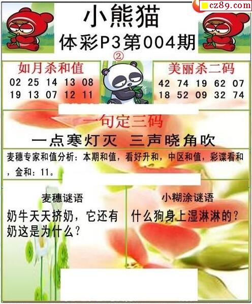 2023年004期牛彩网体彩P3画迷图谜汇总分享