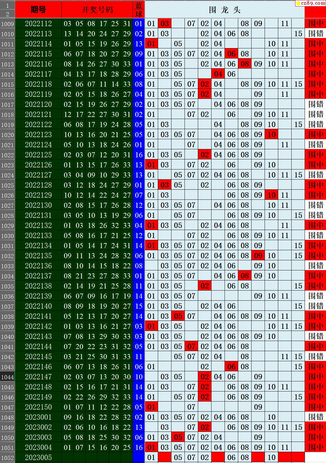 23年005期秋雨龙头凤尾走势图表