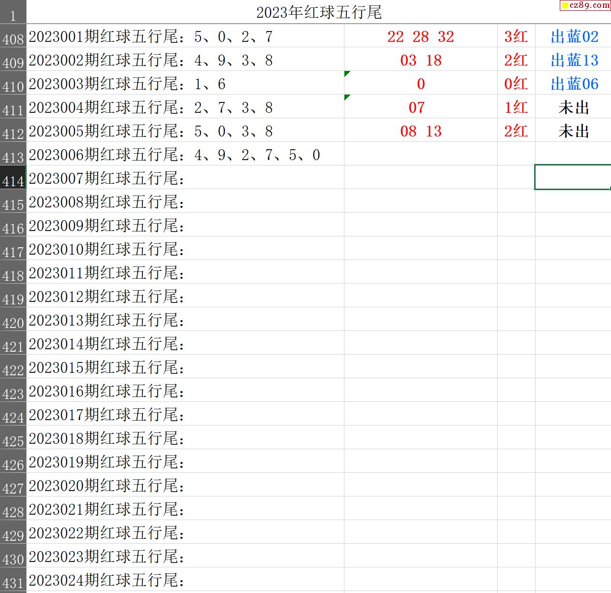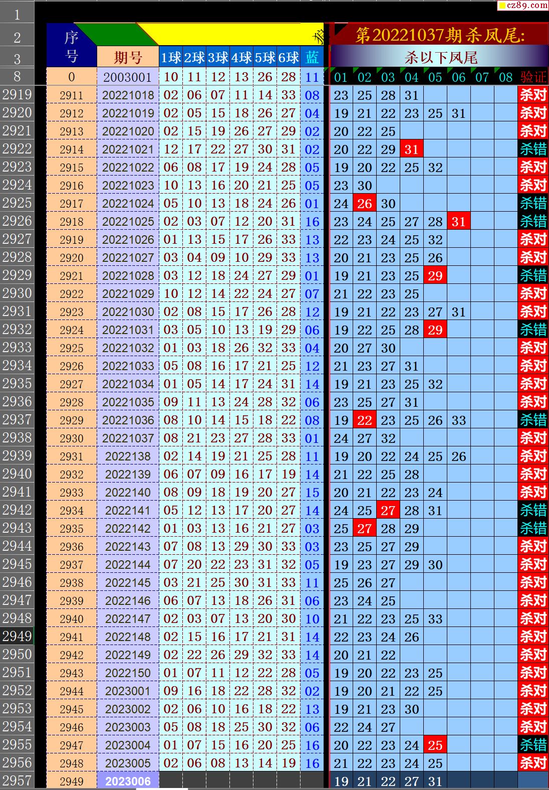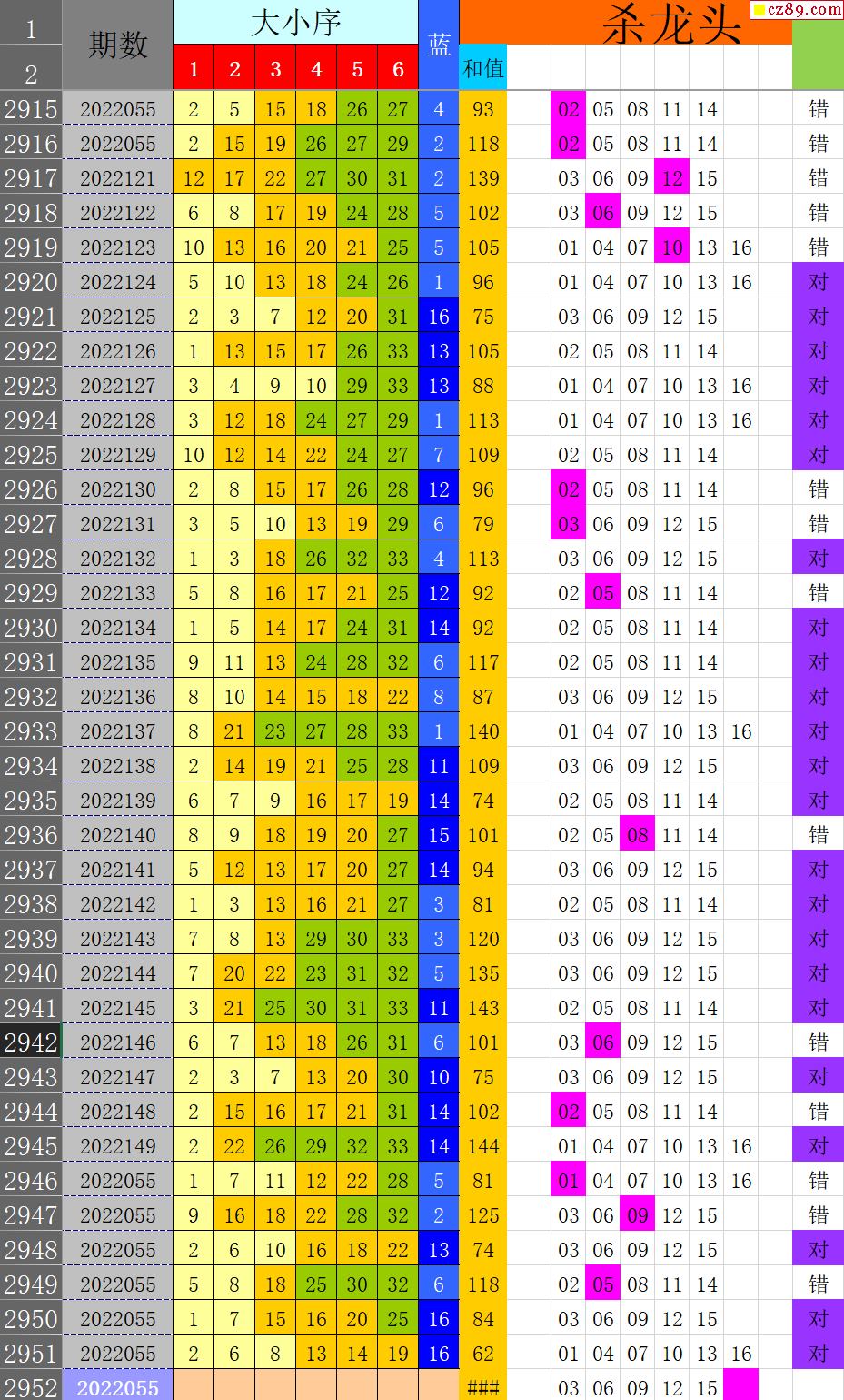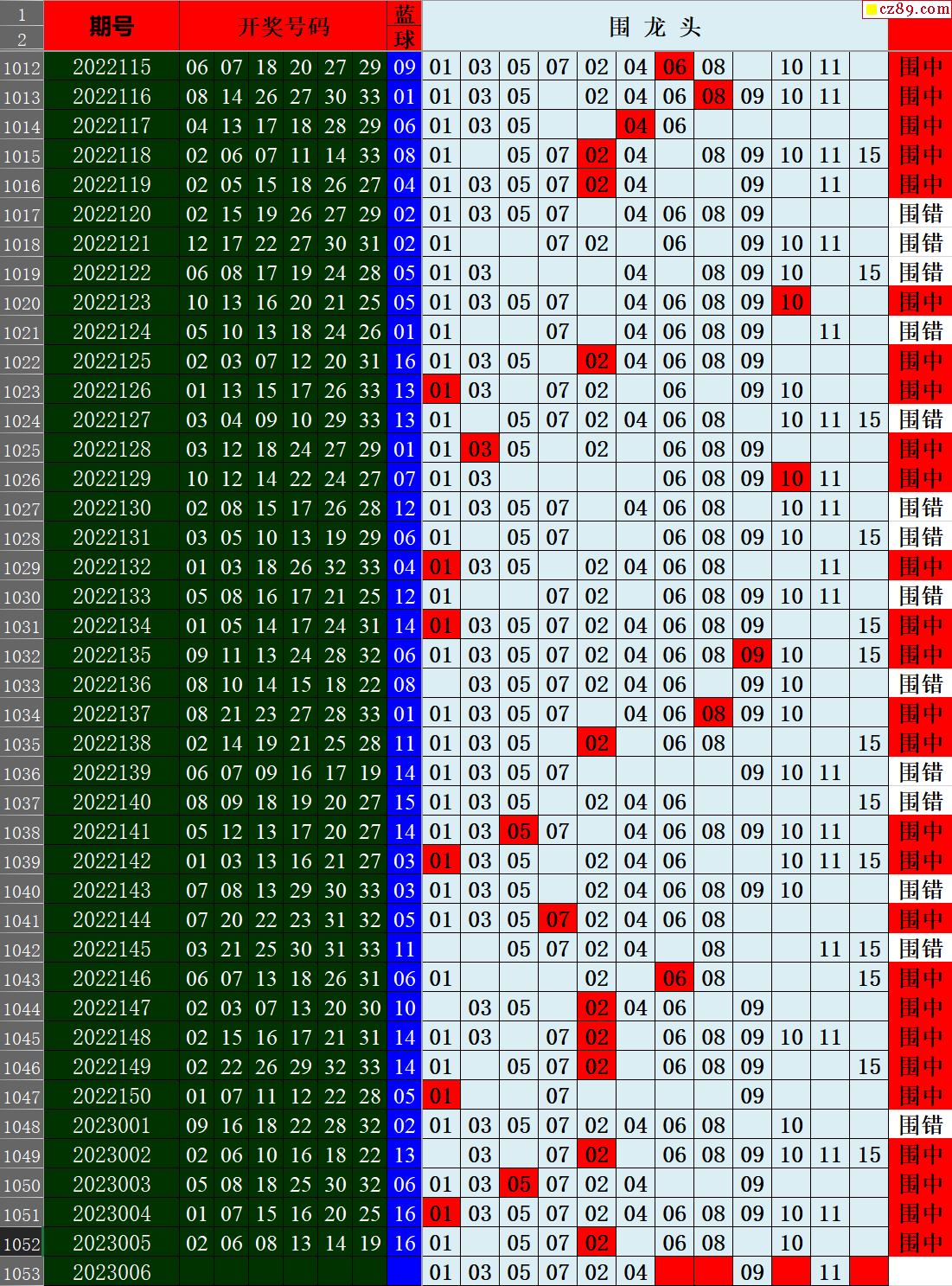23年006期秋雨龙头凤尾走势图表