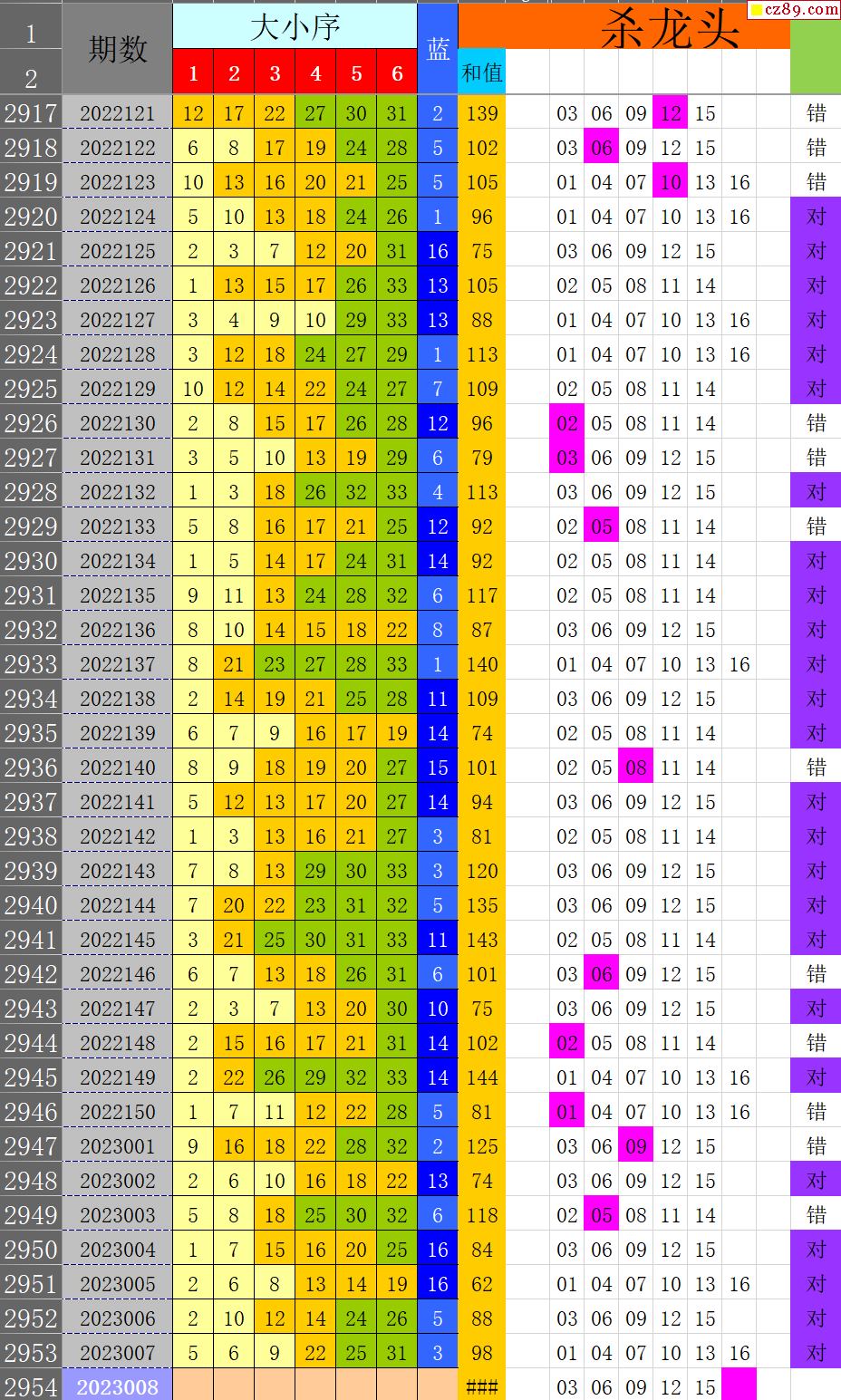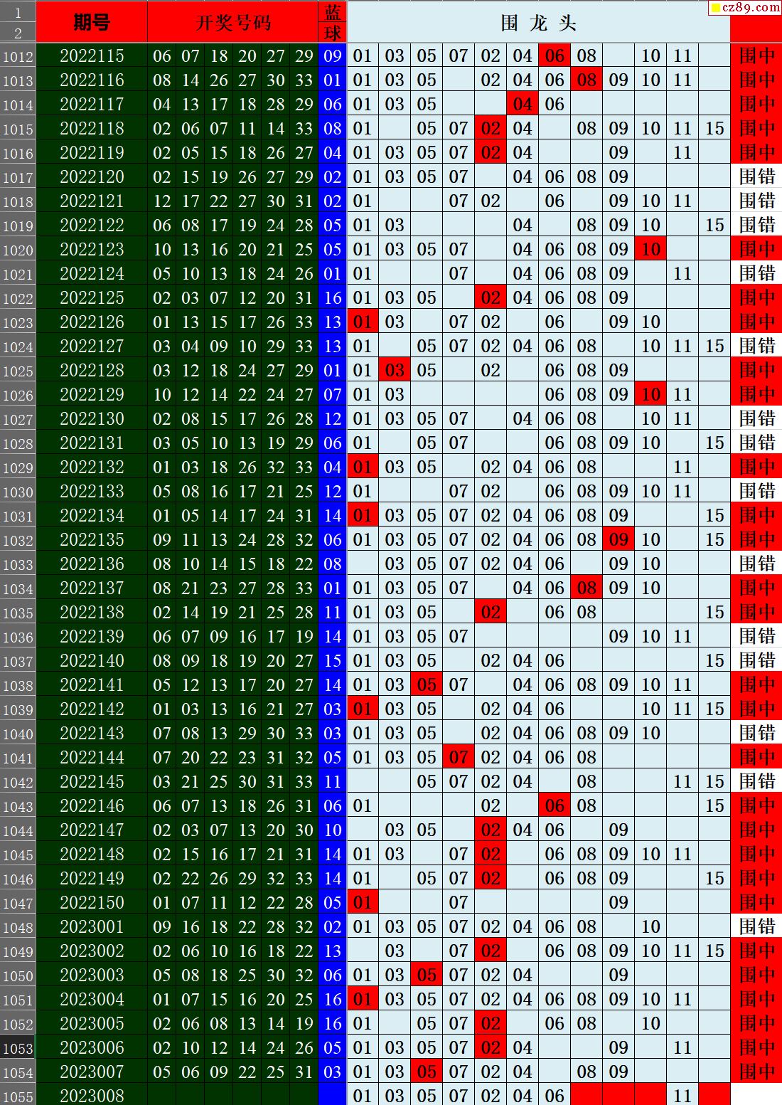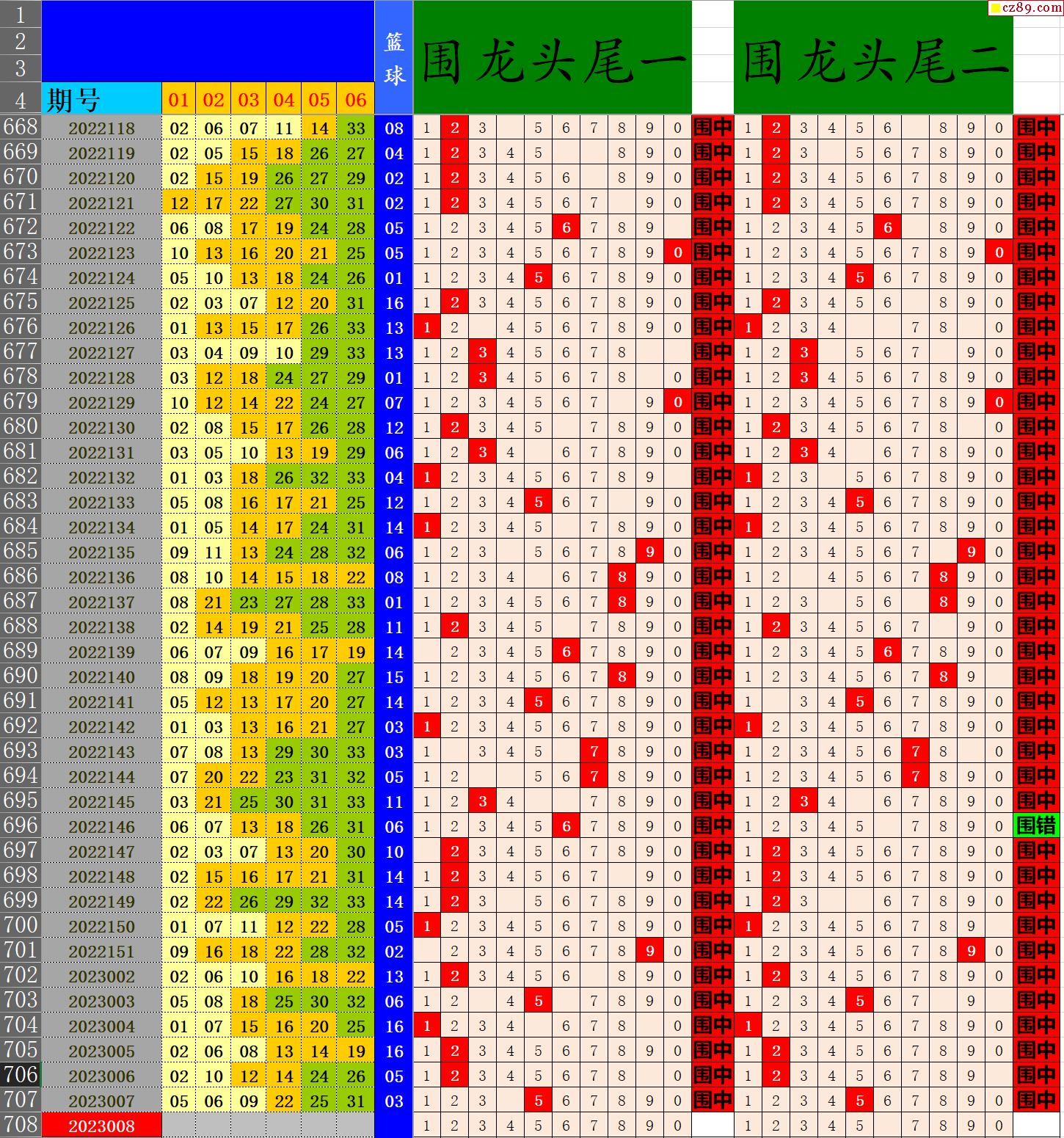 23年008期秋雨龙头凤尾走势图表