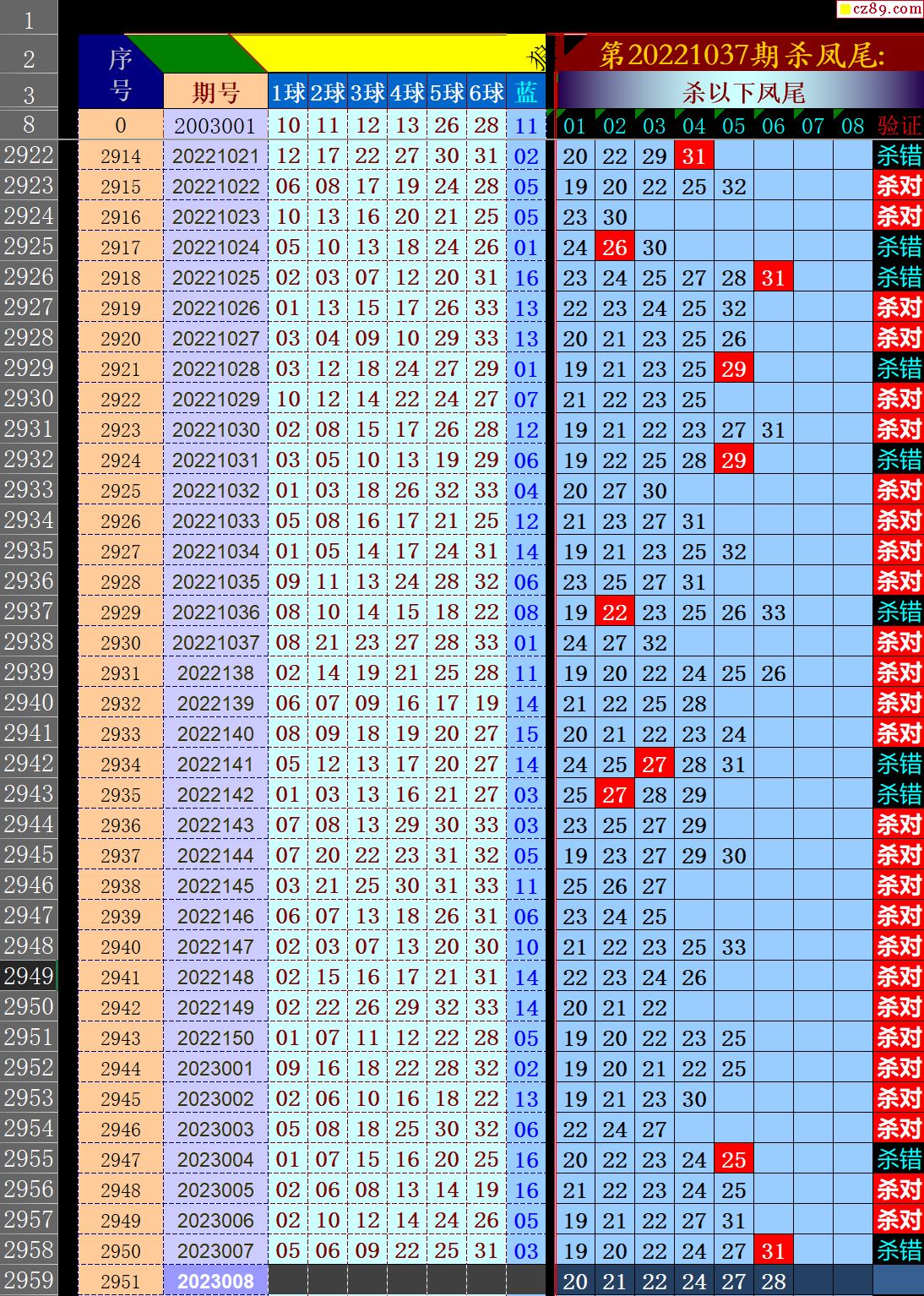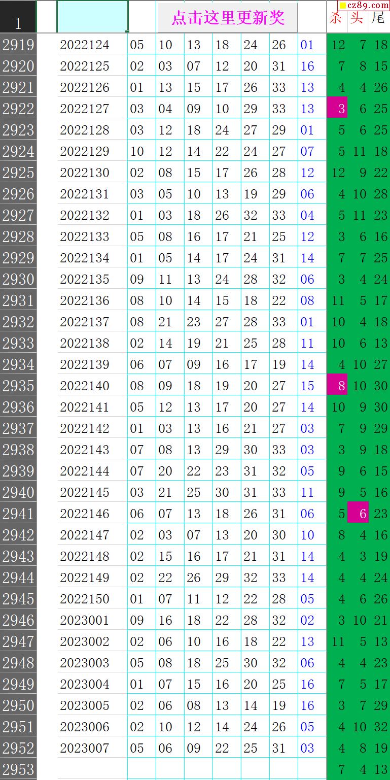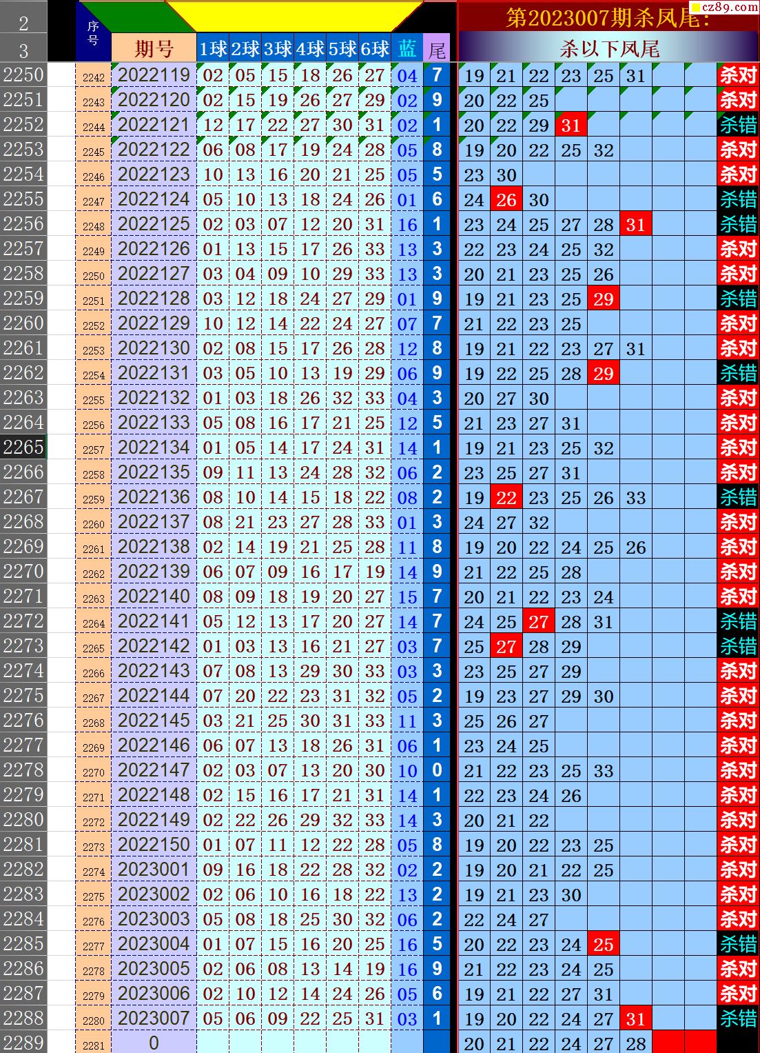 23年008期秋雨龙头凤尾走势图表
