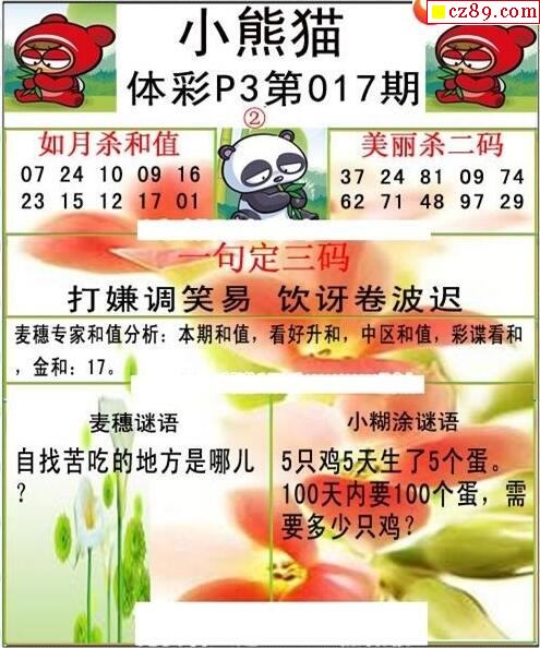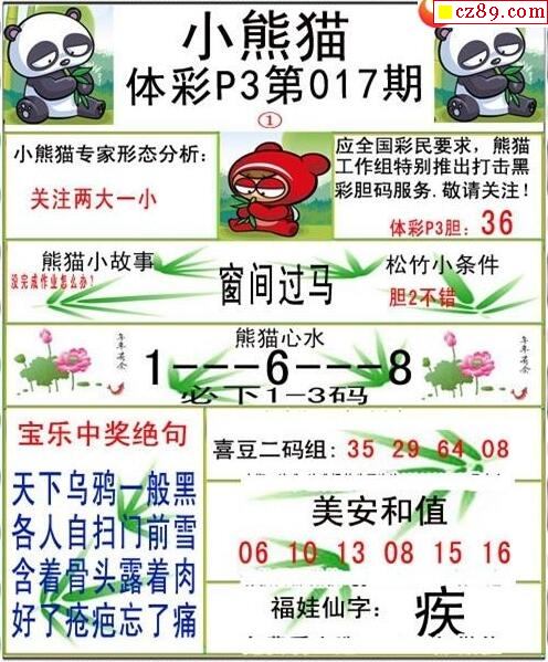 2023年017期牛彩网体彩P3画迷图谜汇总分享