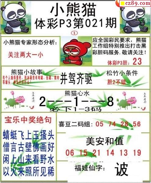 2023年021期牛彩网体彩P3画迷图谜汇总分享