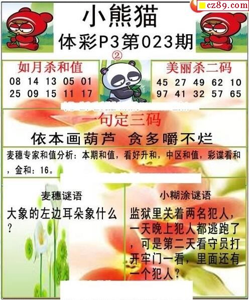 2023年023期牛彩网体彩P3画迷图谜汇总分享