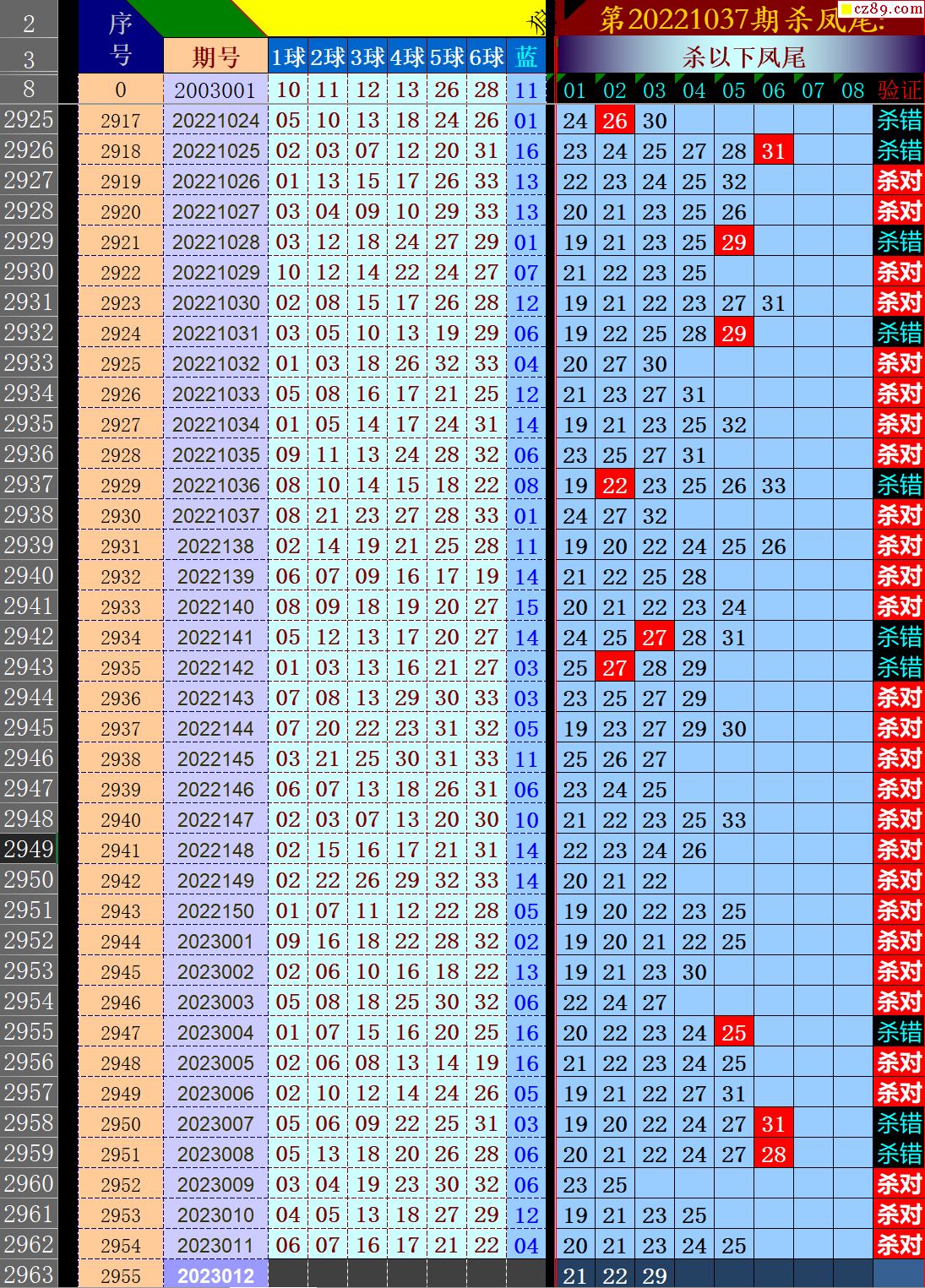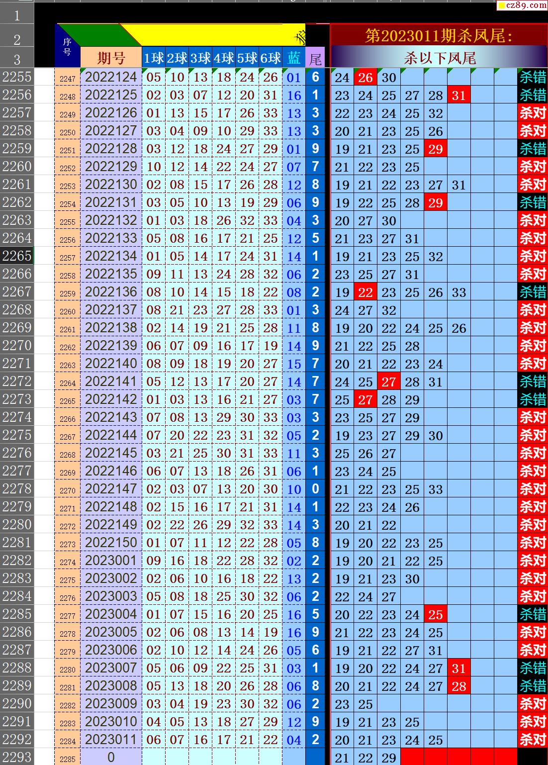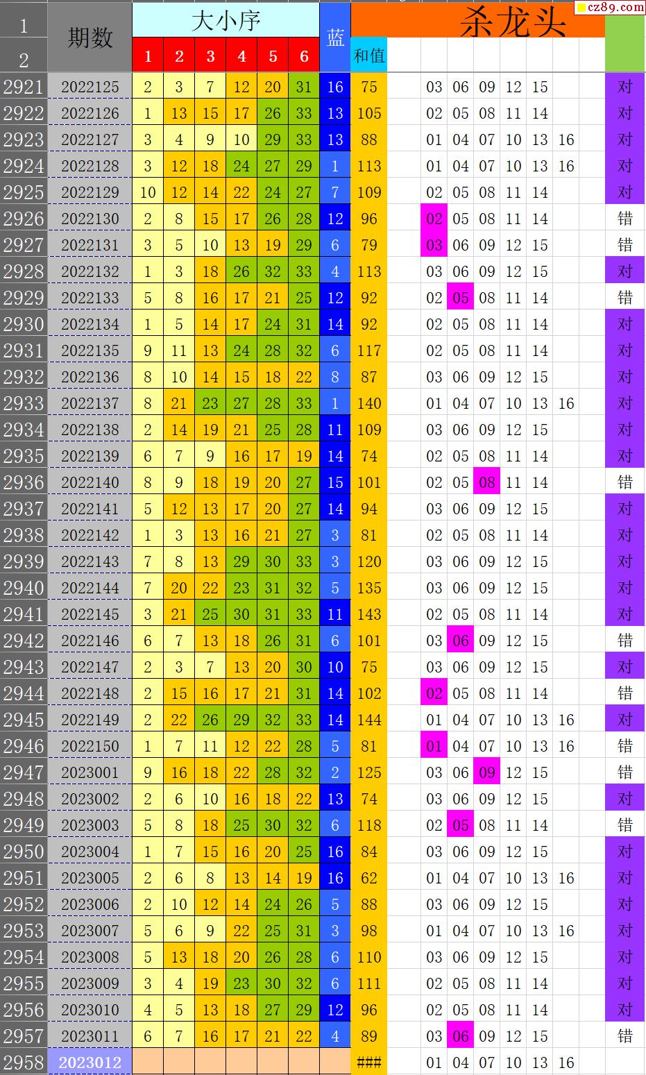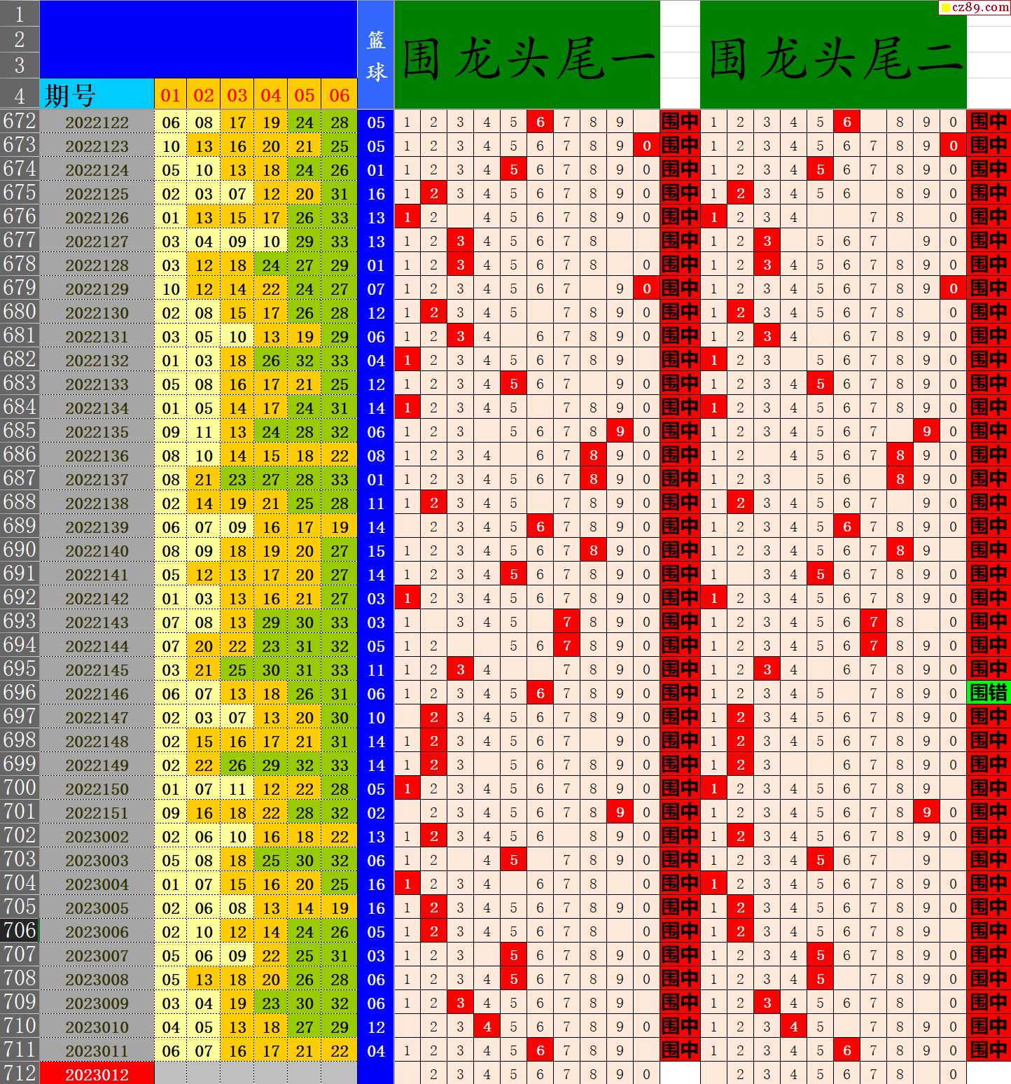 23年012期秋雨龙头凤尾走势图表
