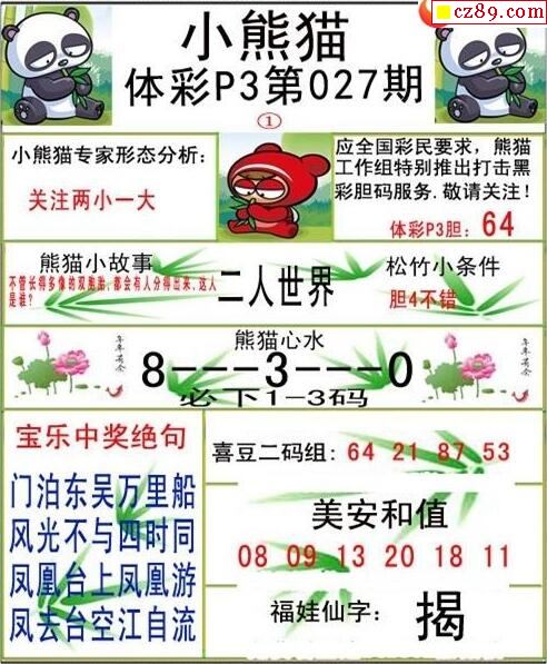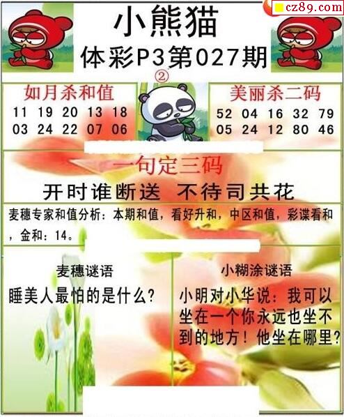 2023年027期牛彩网体彩P3画迷图谜汇总分享