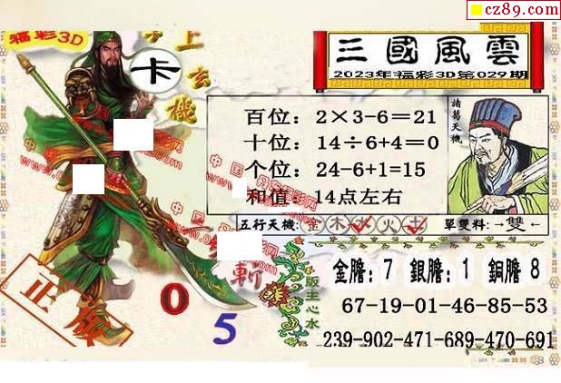 福彩3D2025329期 万家图谜三国胆拖杀图