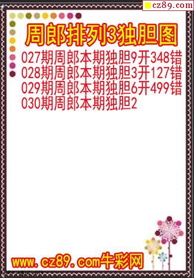 2025年332期牛彩网体彩P3画迷图谜汇总分享