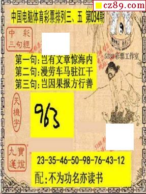 2023年034期牛彩网体彩P3画迷图谜汇总分享