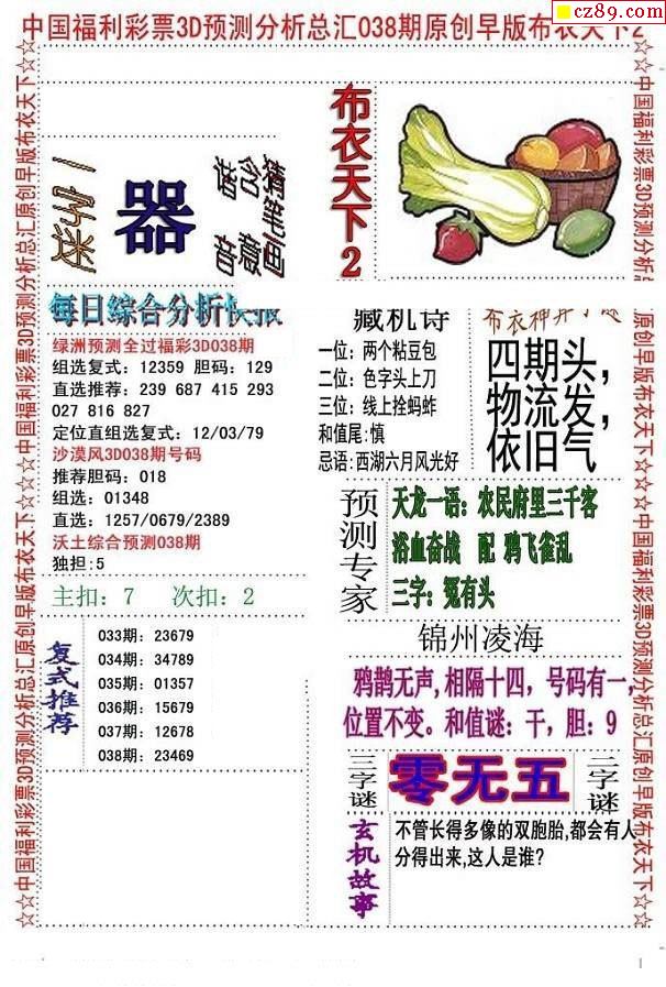 福彩3D2025332期 祁连牧哥百财纳福胆码图谜推荐