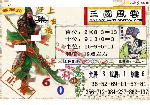 福彩3D2025332期 万家图谜三国胆拖杀图