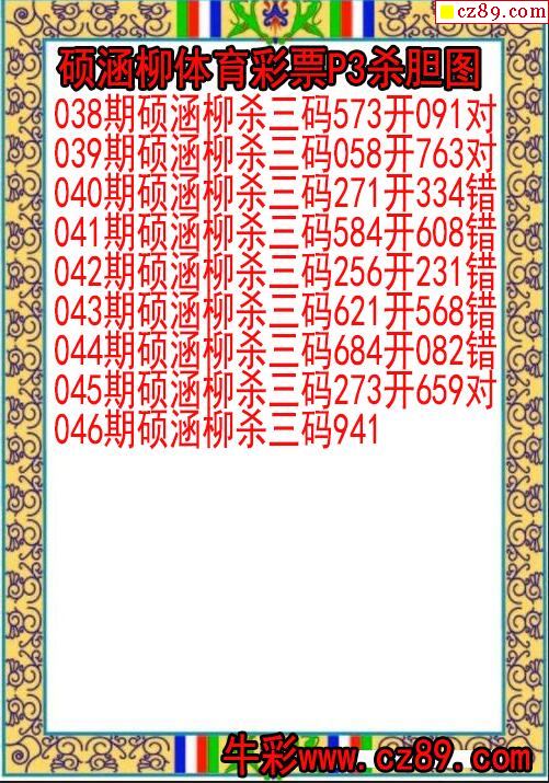 2025年330期牛彩网体彩P3画迷图谜汇总分享