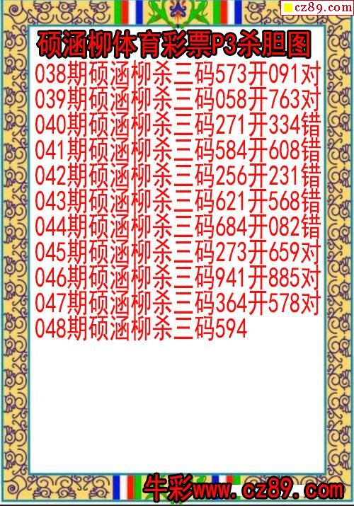 2023年048期体彩P3胆码杀码原创图总汇