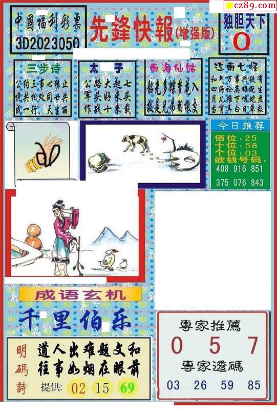 牛彩版3D字谜彩报图25年332期打印版