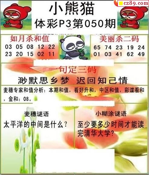 2023年050期牛彩网体彩P3画迷图谜汇总分享