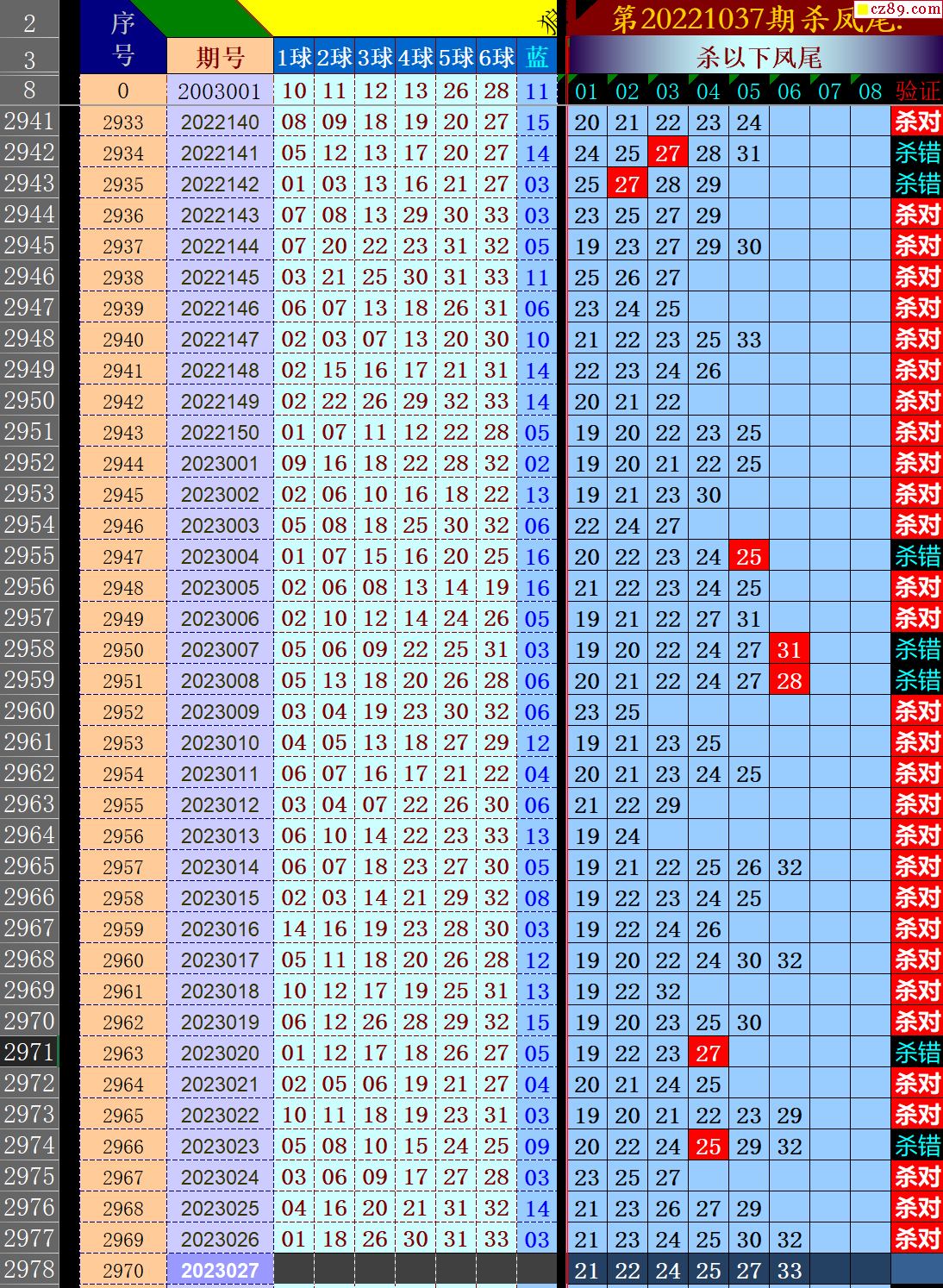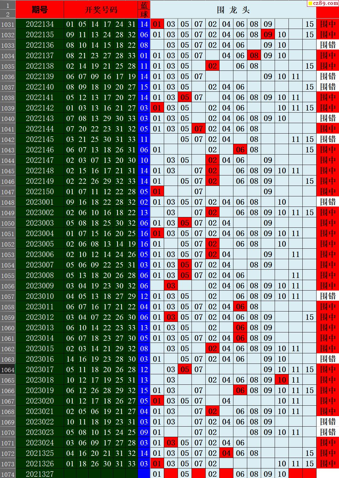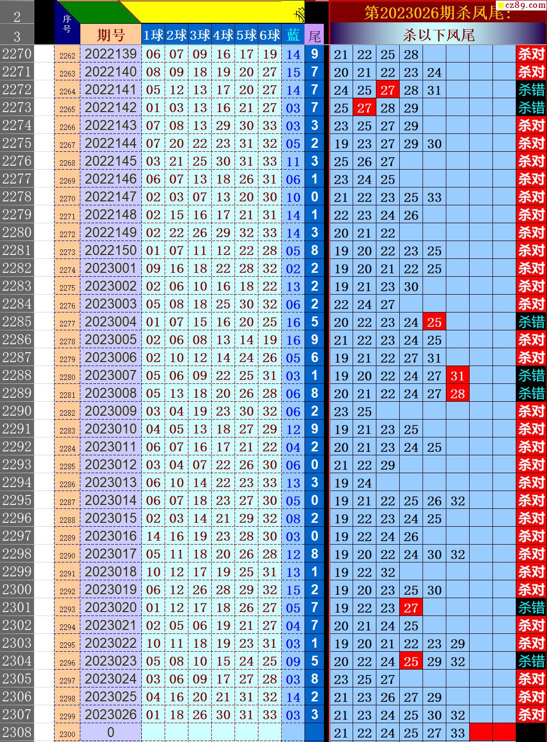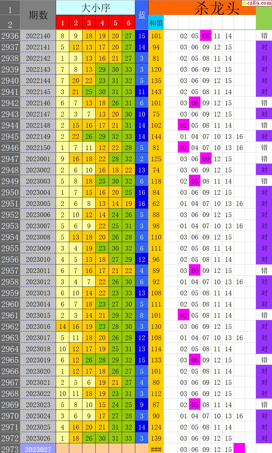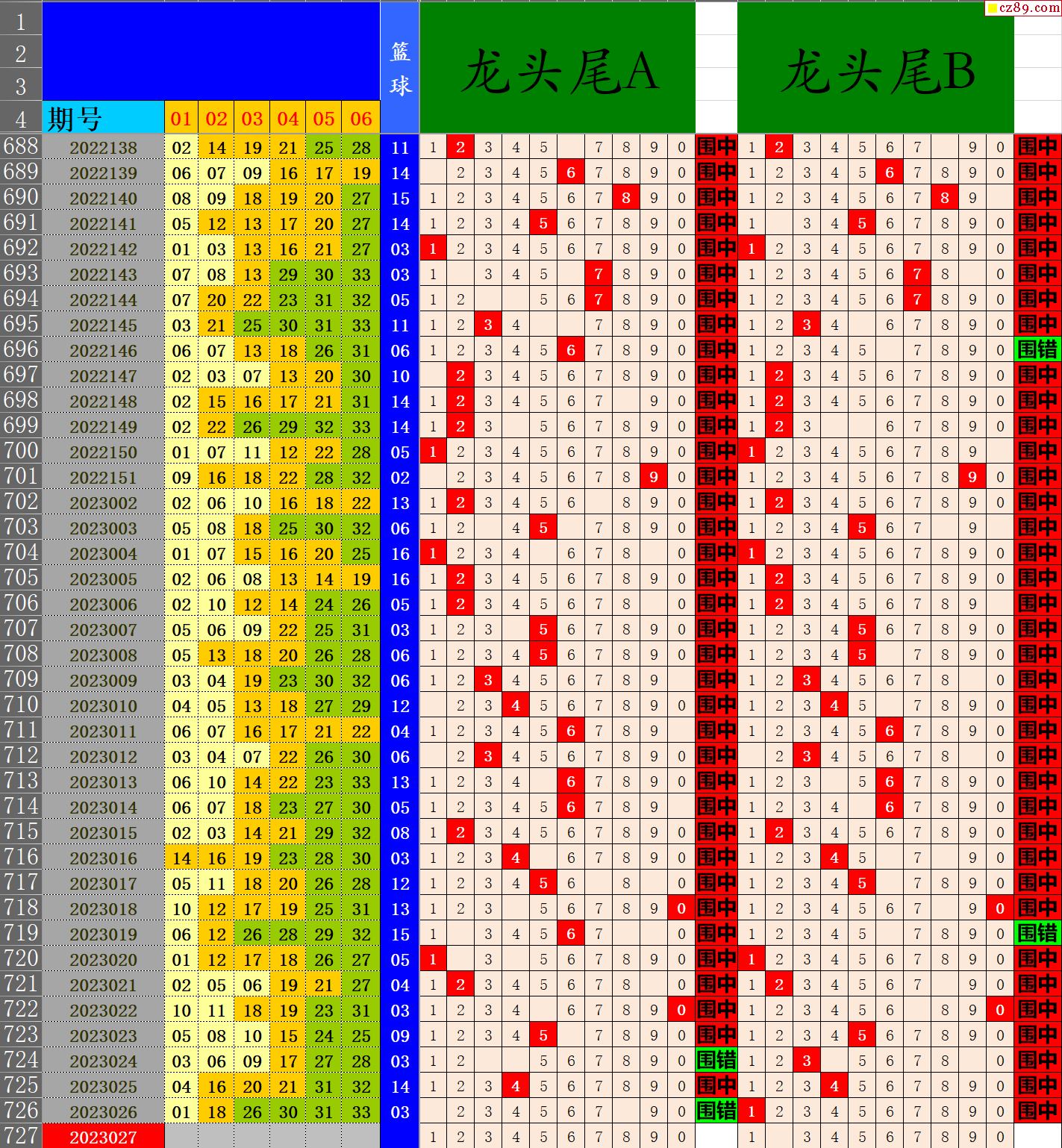 23年027期秋雨龙头凤尾走势图表