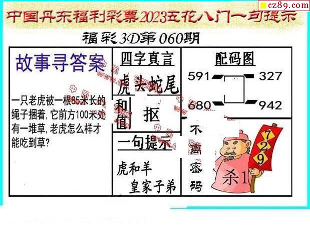 福彩3D2025331期彩赌侠一句定三码字图谜