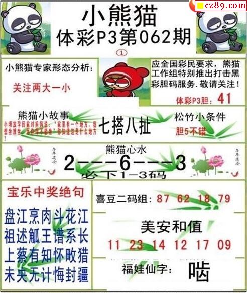 2023年062期牛彩网体彩P3画迷图谜汇总分享
