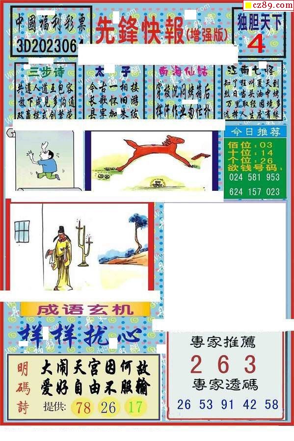 福彩3D2025330期福彩金刚一句定三码字图谜