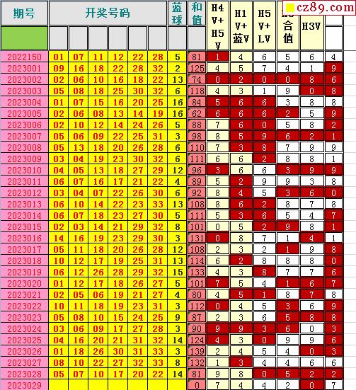 23年029期飞向阳光福彩双色球预测图表汇总