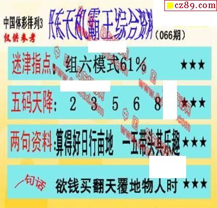 2023年066期牛彩网体彩P3画迷图谜汇总分享